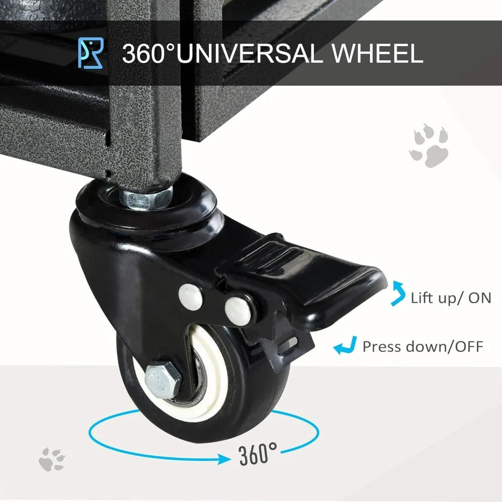 - Easy Mobility: Our heavy duty dog cage features 4 high-quality rolling wheels for easy and effortless movement. Plus, each of them has a built-in brake for added security and to keep your pet in place.
